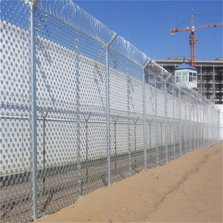 監獄圍欄是用優質熱鍍鋅絲經過精密的焊網機械設備焊接而成、網孔均勻、焊接牢固、防腐防銹、網面色澤潔白,鋅層厚,焊點處鋅量較高、網孔均勻,網面平整,焊點抗拉力強,防腐蝕能力高等特點。具有一般監獄圍墻不具備的優點。