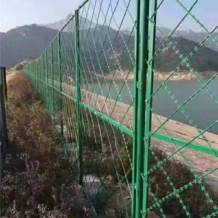 新型水庫防護圍欄網---飲用水源地隔離網是一種新型隔離網。有效防攀爬防牲畜進入。