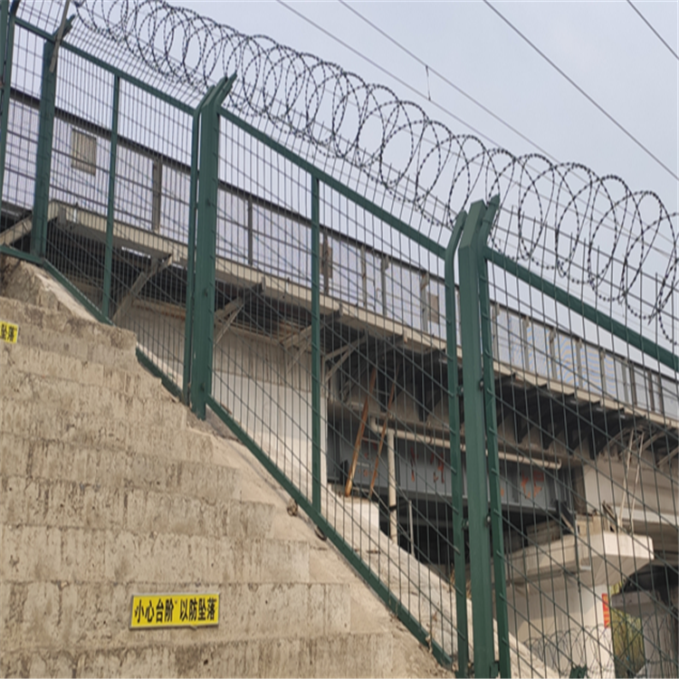 鐵路護欄網是一種鐵路兩側為防止行業安全地帶鐵路而封鎖場所護欄。它主要用于鐵路封鎖高速公路護欄及開發區圍界和場區圍網使用。本產品具有耐用、美觀、視野開闊的特點,并具有優良的防護機能。產品可用于鐵路、高速公路、垃圾填埋場試驗場地使用。