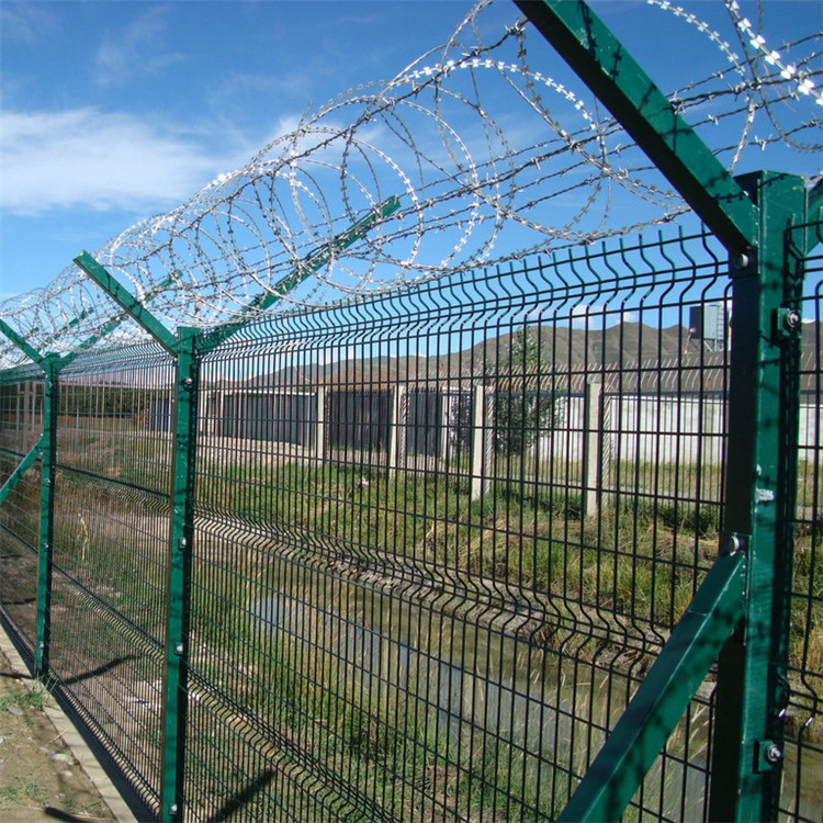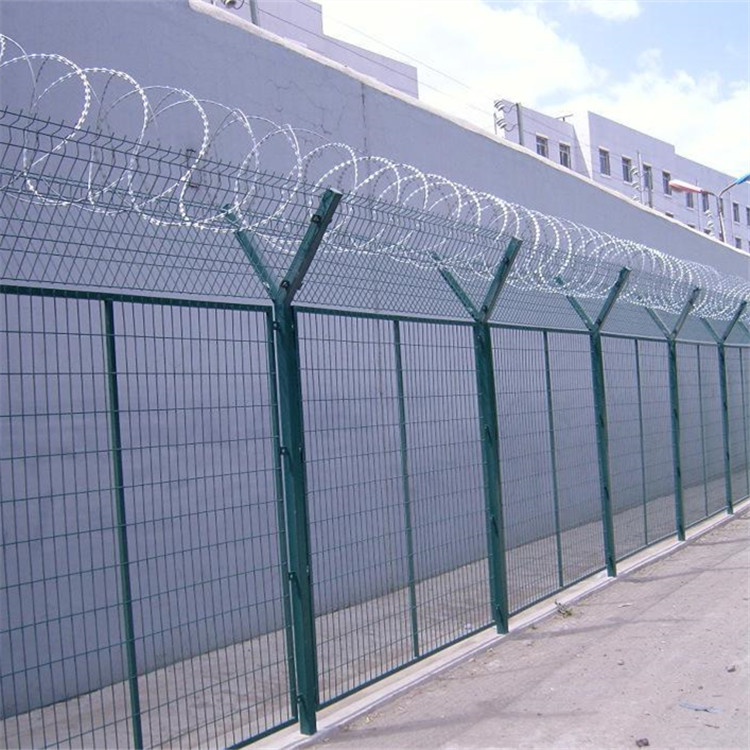 監獄鋼網墻是一種新型保護網,由刀片,刀尖,鋼絲交織而成。監獄鋼網墻有警戒的效果,原料強,強度高,張力高,防翻越,防爬等設計獨特的設計,使人不敢觸摸,所以它可以達到恐嚇的效果,更有良好的保護屏障影響。