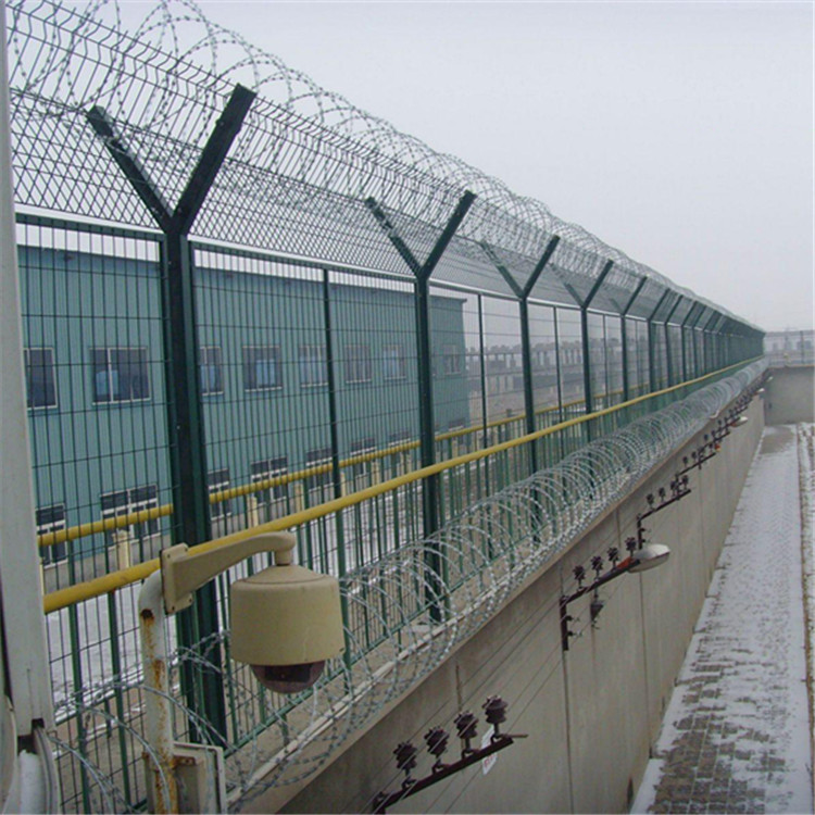 監獄鋼網墻是非常重要的監獄安全防護設施,由焊接鋼網加蛇腹形刀刺網組合而成。監獄鋼網墻具有結構新穎、堅固緊密、網面平整、網孔
