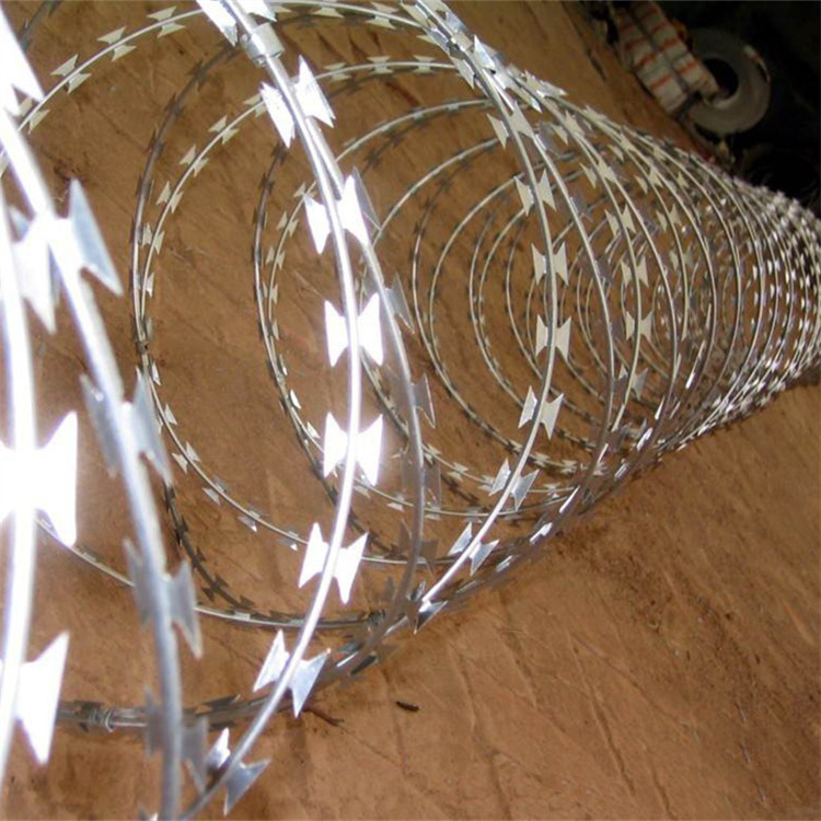 蛇腹型刀刺網(wǎng)工藝由熱鍍鋅鋼板或不銹鋼薄板沖壓出尖利的刀片狀,高張力鍍鋅鋼絲或刀片刺繩者不銹鋼絲做芯線組合而成的阻絕器件。于剌網(wǎng)造形共同不易接觸,因此能抵達(dá)好的防護(hù)阻隔作用。產(chǎn)品的首要原料有鍍鋅板和不銹鋼板。