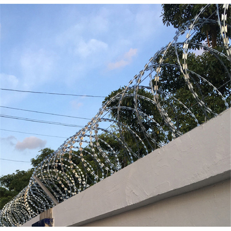 蛇腹型刀刺網(wǎng)也稱(chēng)為刀片刺絲、刀片剌網(wǎng),是一種新式防護(hù)網(wǎng)。蛇腹型刀刺網(wǎng)具有漂亮、經(jīng)濟(jì)適用、防阻作用好、施工便當(dāng)?shù)葍?yōu)良特征,如今,蛇腹型刀刺網(wǎng)已被普遍應(yīng)用于許多的工礦企業(yè)、園林公寓、邊防哨所、軍事范疇、監(jiān)獄、看守所、政府建筑物和其他的區(qū)域。