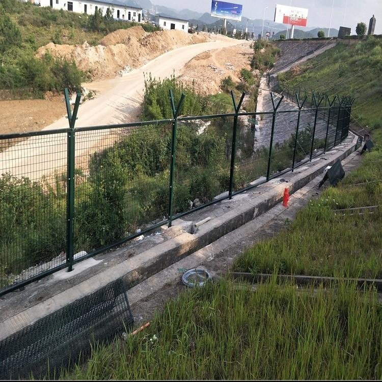 機場圍界隔離網(wǎng)又稱作“Y型安全防御護(hù)網(wǎng)”,是由V型支架立柱,加強型焊接片網(wǎng),安全防盜.連接件和熱鍍鋅刀片刺籠組成強度和安全防御性級別很高。近年來,被廣泛應(yīng)用在機場,軍事基地等高安全場所。在隔離網(wǎng)頂部加裝刀片刺絲、刀片刺繩后又很好的增強了防護(hù)性能。